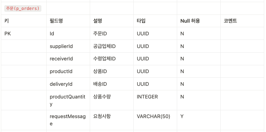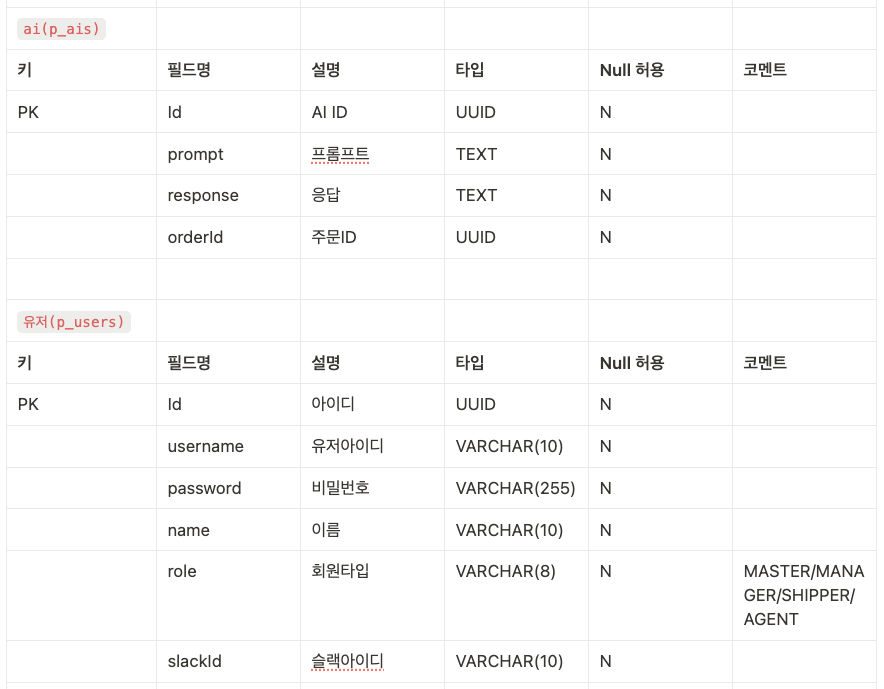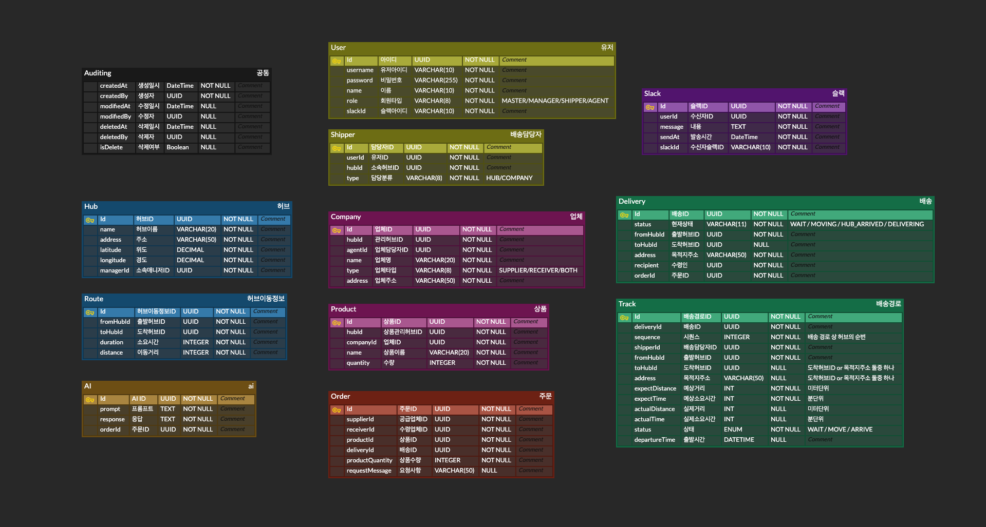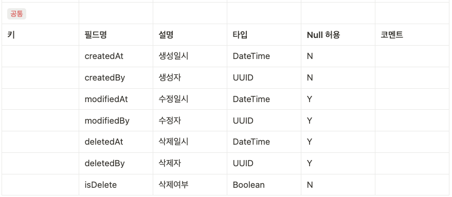 각 테이블은 해당 공통 컬럼을 가지고 있습니다.