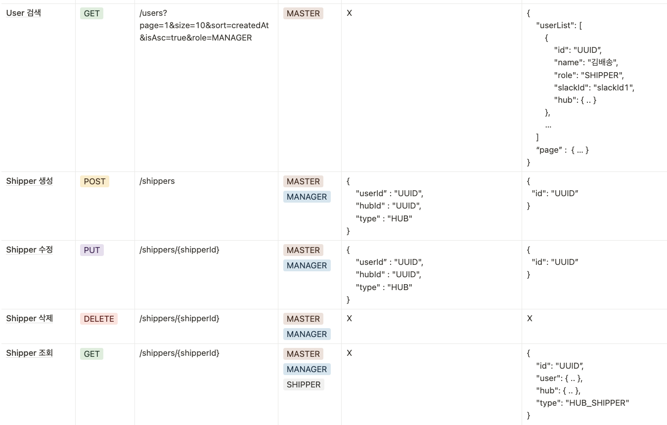 | user-service | · 사용자 (User) · 배송담당자 (Shipper) |